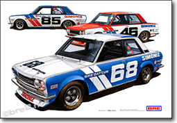 Hector Cademartori is the latest artist to join the ranks of those who have found the BRE Datsuns irresistible subject matter. Hector joins famed Japanese artist Telly Sahara who honors BRE by capturing the beauty of the BRE Datsun racers in his high quality artwork.