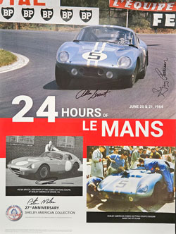 Four autographs Shelby Collection Peter Brock Daytona Cobra Coupe poster 18x24