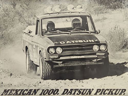 Rare Original Sepia Tone Early '70s poster of Datsun Truck Racing Mexican 1000 (39.5"x29.5")